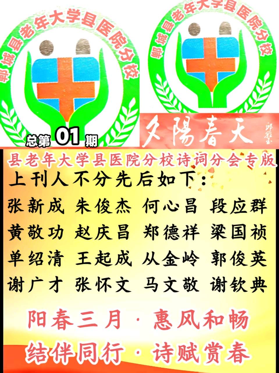《夕阳春天微刊精品》县老年大学县医院分校首期创刊号【郊区春游】组诗 主编:张新成