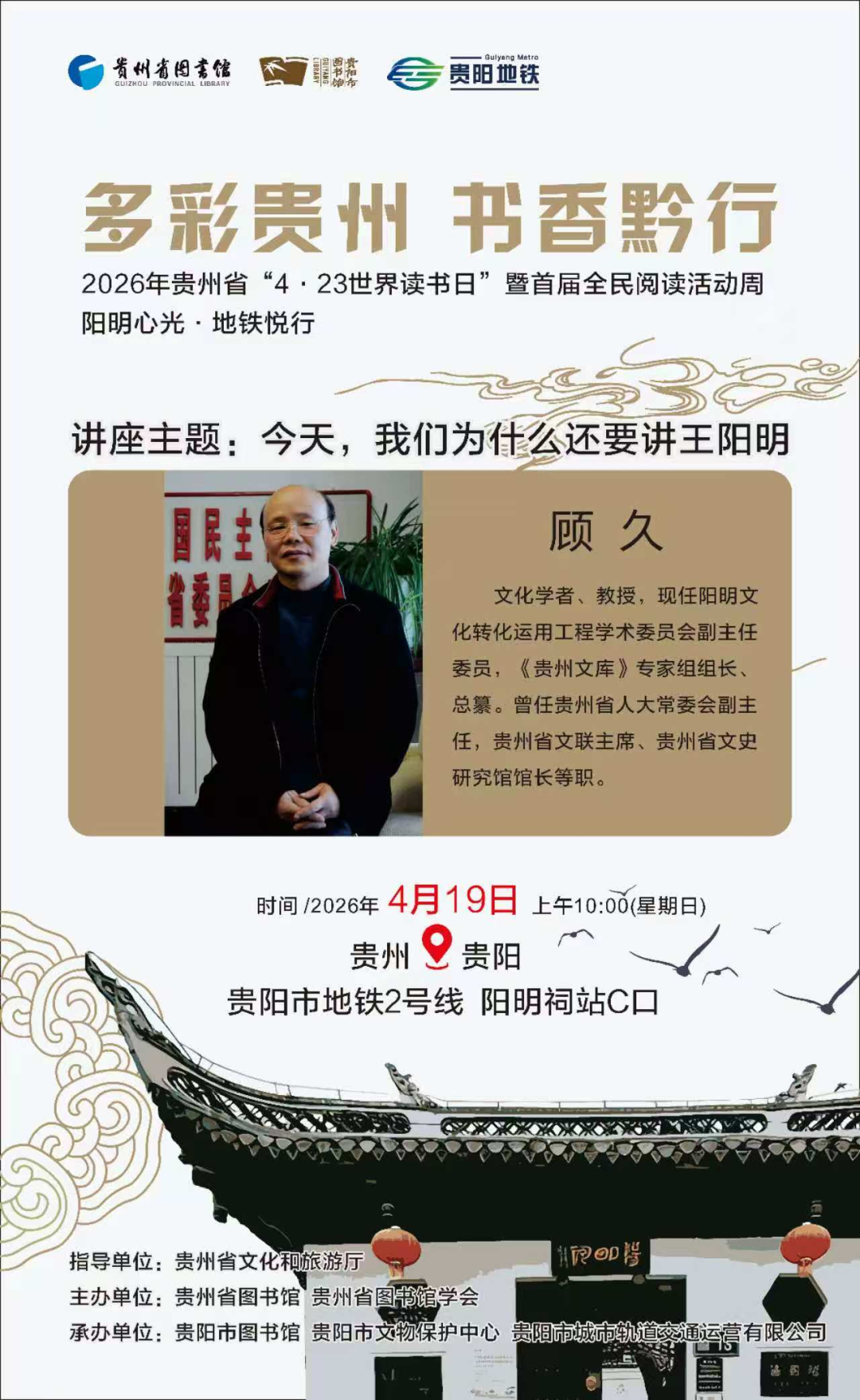 城市地铁,日夜奔流;阳明心学,穿越五百载光阴。当古老哲思与都市动脉相遇会碰撞出怎样的文化火花? 时值2026年贵州省“4·23世界读书日”暨首届全民阅