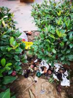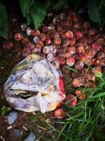 武汉东湖高新区中芯二路绿化带里垃圾长霉发臭