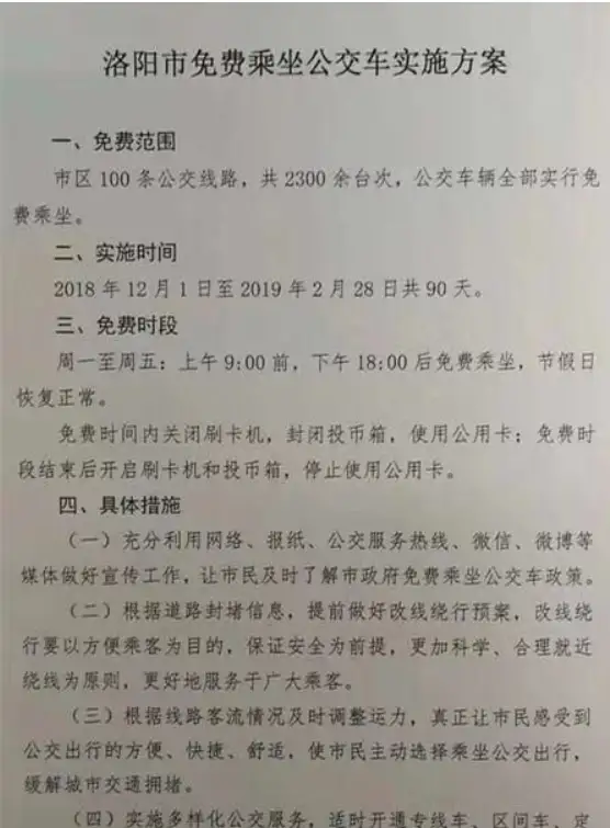 洛阳公交100条线路定时免费乘坐,赶快来看看!