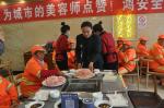阳信爱心企业寒冬请环卫工人免费吃肥牛