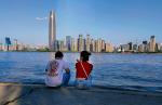 近期,长江武汉段水位上涨,市民纷纷前往汉口江滩长江边观秋汛