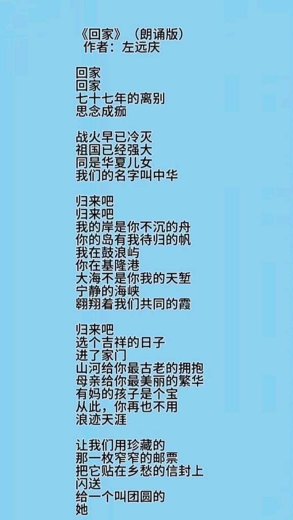 同题诵:《回家》作者:左远庆 太阳花空中朗诵俱乐部0353期
