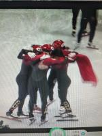 短道速滑混合接力中国夺金Ⅱ文/赵京江,图/网络,书法/太行山人武功