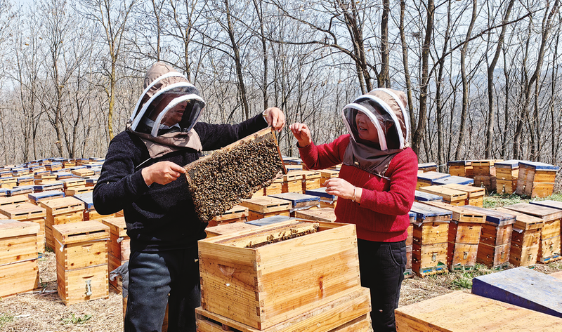 岐山县故郡镇涝川村中蜂养殖基地名声在外 槐花眼下未开盛 蜂农先至抢蜜源