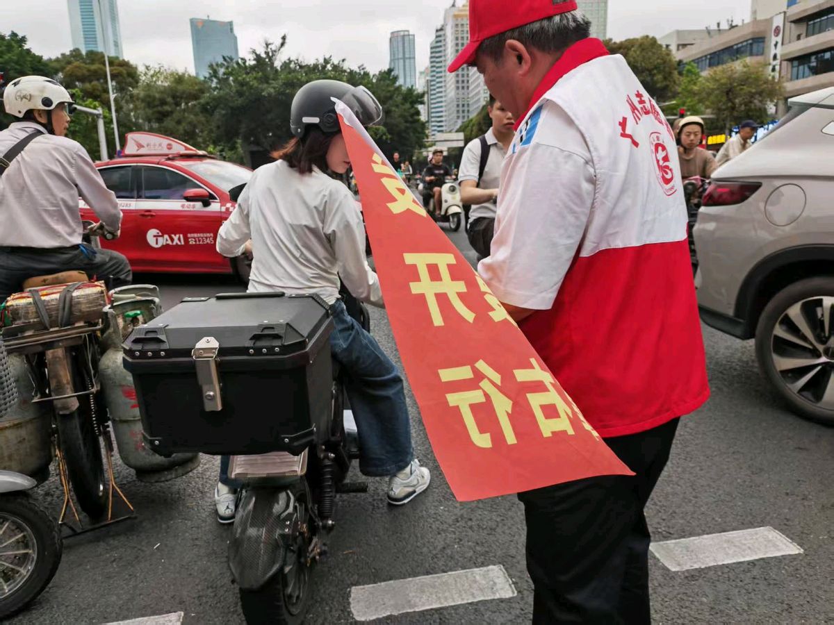 正佳广场前的那抹志愿红 文/池朝兴 图/何卫红 肖莎
