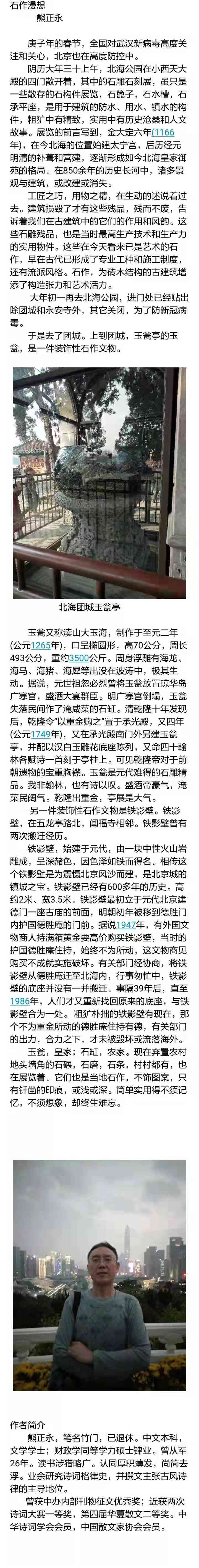 石作漫想.熊正永老师精文欣赏∥中华诗歌联合会广西文学社《鸿玉书声》第52期