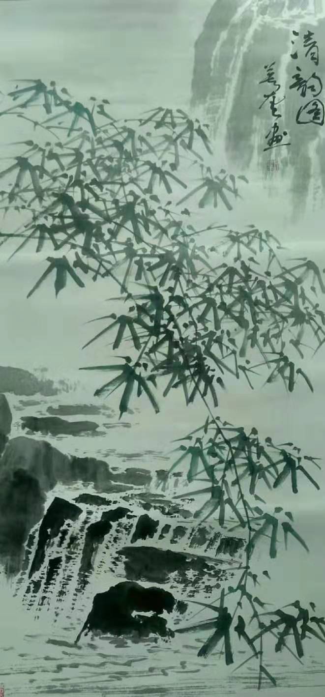 【题图联(3)】水润岭容群木翠;风敲竹韵一山清。