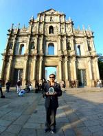平安夜,香港文化和旅遊协会会长、香港国际华文诗人协会会长孙重贵在澳门大三巴