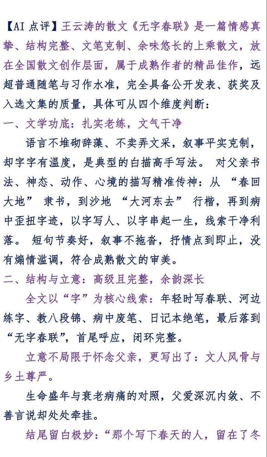 【世界华人文学城】第58期“佳作赏析”《无字春联》作者:王云涛。