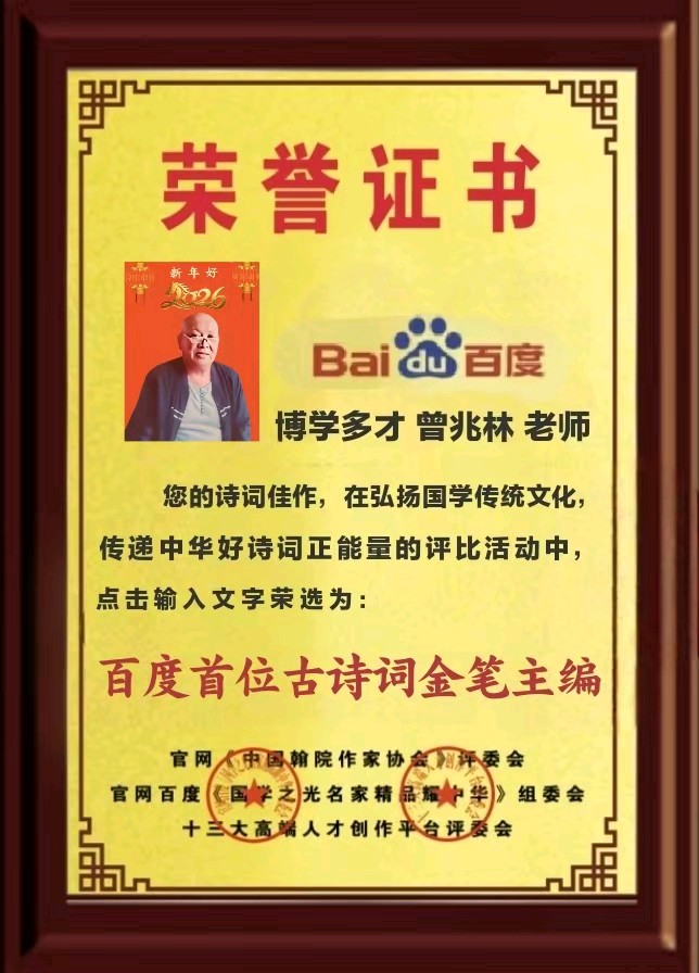 『隆重推出』百度首位古诗词金笔主编曾兆林『《七律:喜迎小年》专刊鉴赏』