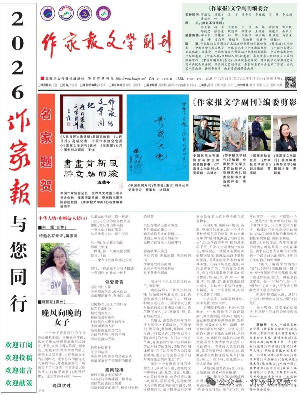 欢迎参加《作家报·文学副刊》中华人物人才库