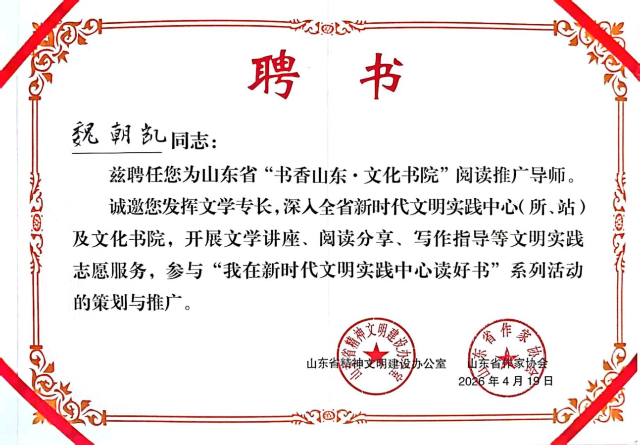济宁市作家魏朝凯受聘担任山东省“书香山东·文化书院”阅读推广导师