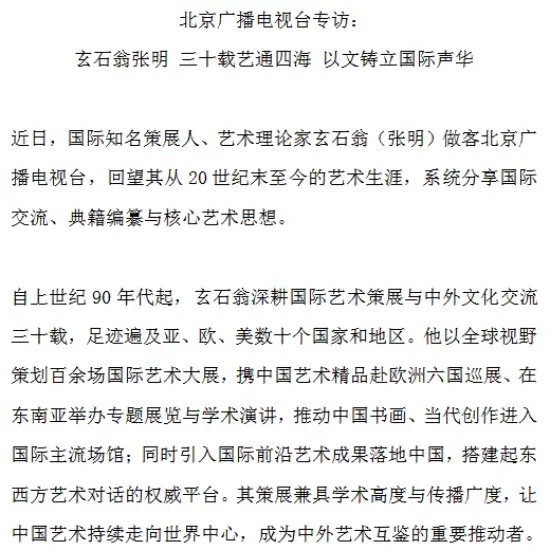 玄石翁张明接受北京广播电视台采访