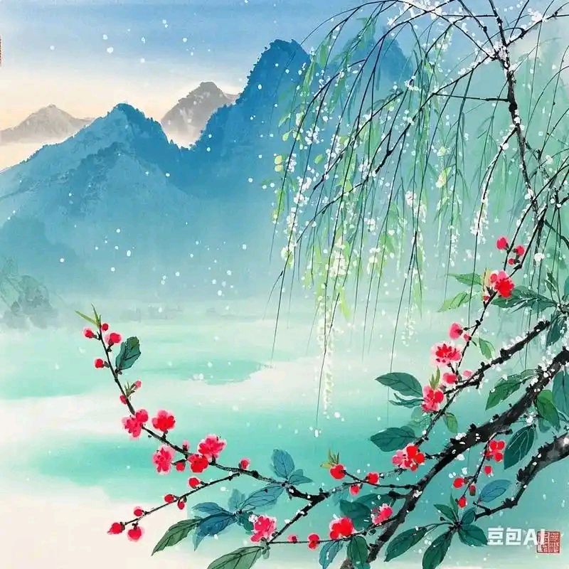 著名朗诵、表演艺术家长明朗诵中国著名书法家、作家诗人邓代昆作品《湖柳》自题画
