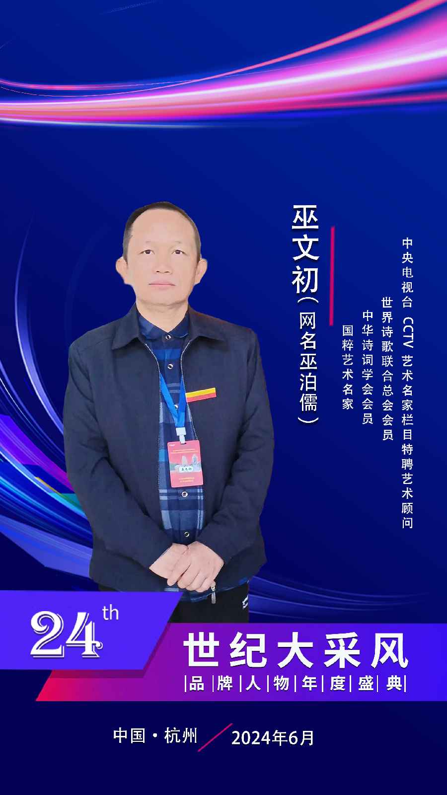 巫文初,网名巫泊儒,笔名粤儒。广东粤北翁源人,中国文革初年出生。国粹艺术名家。广东岭南诗社社员,中华