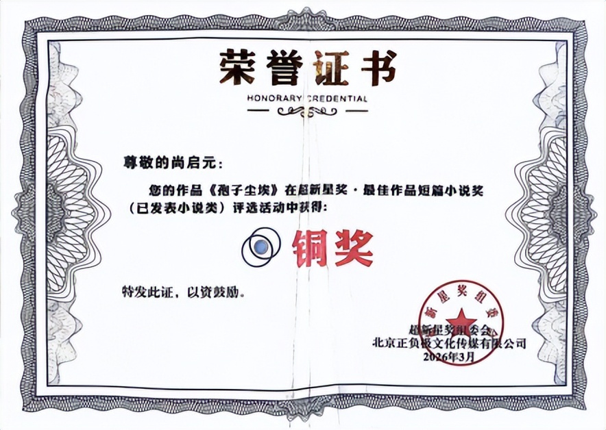 青年作家尚启元获超新星奖·最佳作品短篇小说奖