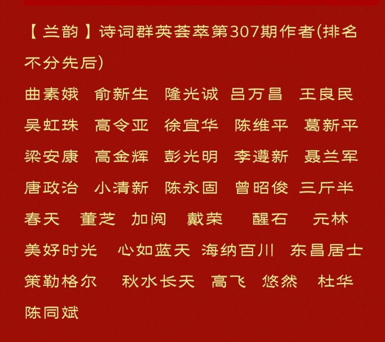【兰韵】诗词群英荟萃第307期词绝句律诗楹联题图