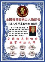 官网隆重推出「诗赞曹正荣全国极具影响力文化人物:著名皇家书法艺术家墨宝感怀」