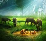 忆王孙.牧童嬉塘(题图词) 文/独舞风铃