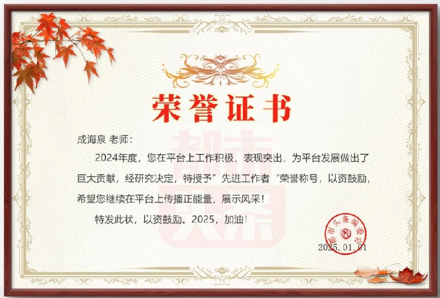 【国风燕赵诗社】热烈祝贺荣获2024年度《都市头条》优秀工作者.新春愉快!🌹🌹🌹
