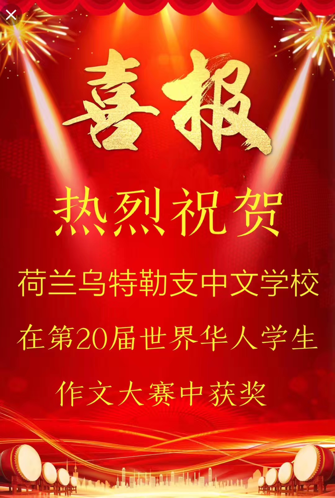 【华语快讯】荷兰特勒支中文学校在第20届世界华人学生作文大赛中获奖