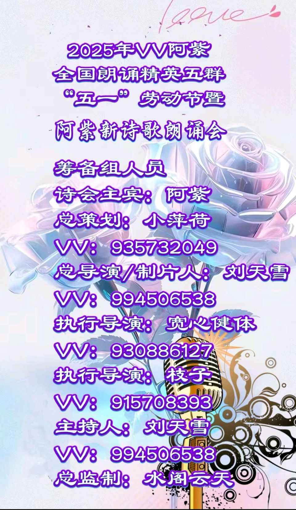 2025年VV阿紫全国朗诵精英五群“五一”劳动节暨《阿紫新诗专场朗诵会》
