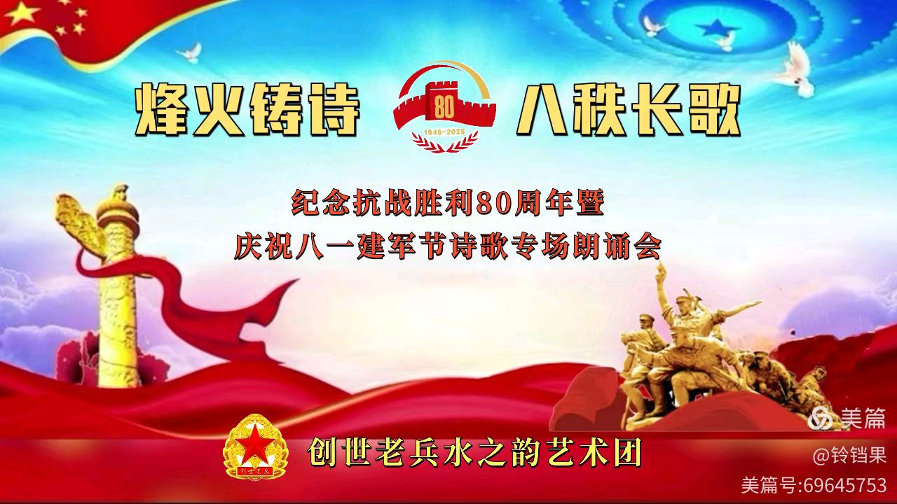 创世老兵水之韵艺术团 ‖ 烽火铸诗,八秩长歌——纪念抗战胜利80周年暨庆祝八一建军节诗歌专场朗诵会