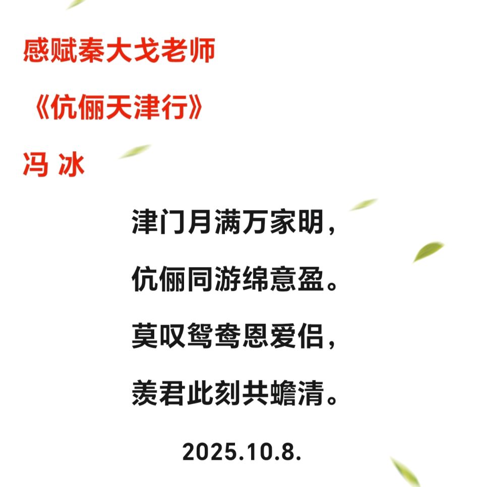 【北京头条】《汉诗文旅》第267期广西诗人杨顺丰领和秦大戈《中秋津卫赏月吟》——