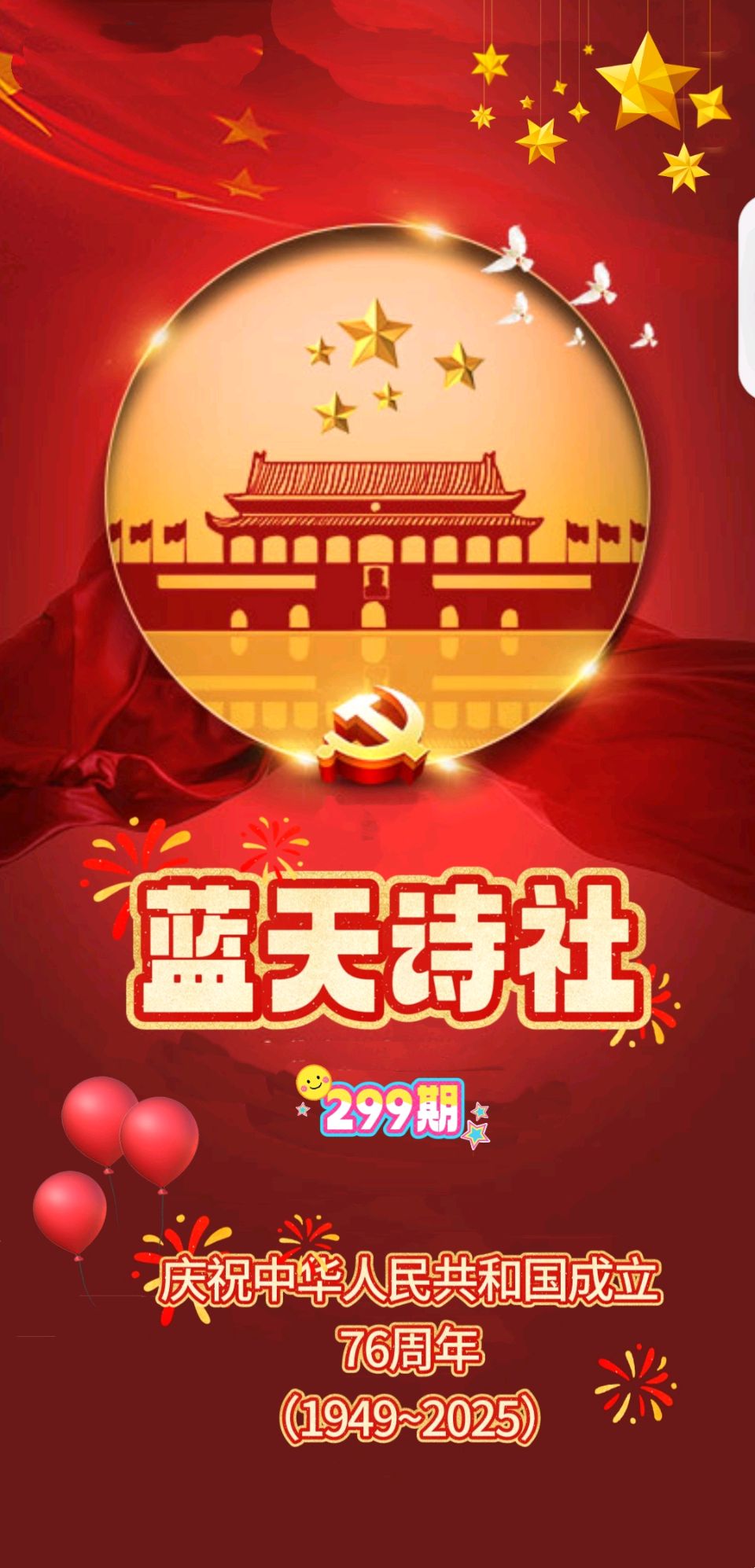 【蓝天诗社】299期 《国庆中秋》专辑 盛世华章庆国庆;良辰美景度中秋