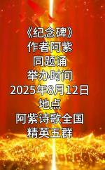 【美文同诵】诗人阿紫新诗《纪念碑》——为纪念中国人民抗日战争暨世界反法西斯战争胜利80周年而作/朗诵:阿紫诗歌全国精英五群朗诵团(部分团员)