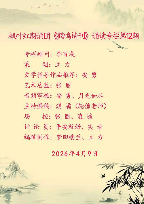 [枫叶红朗诵团 鹤鸣诗刊]诵读专栏第12期《王珉老师个人作品选》[枫叶红霞第260期]