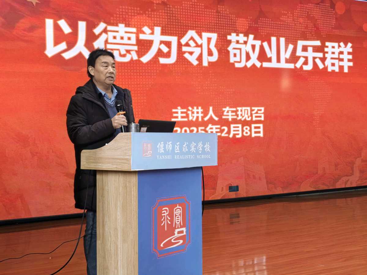 “以德为邻 敬业乐群” 偃师区关工委执行主任车现召走进“洛阳市偃师求实学校”开展公益演讲。