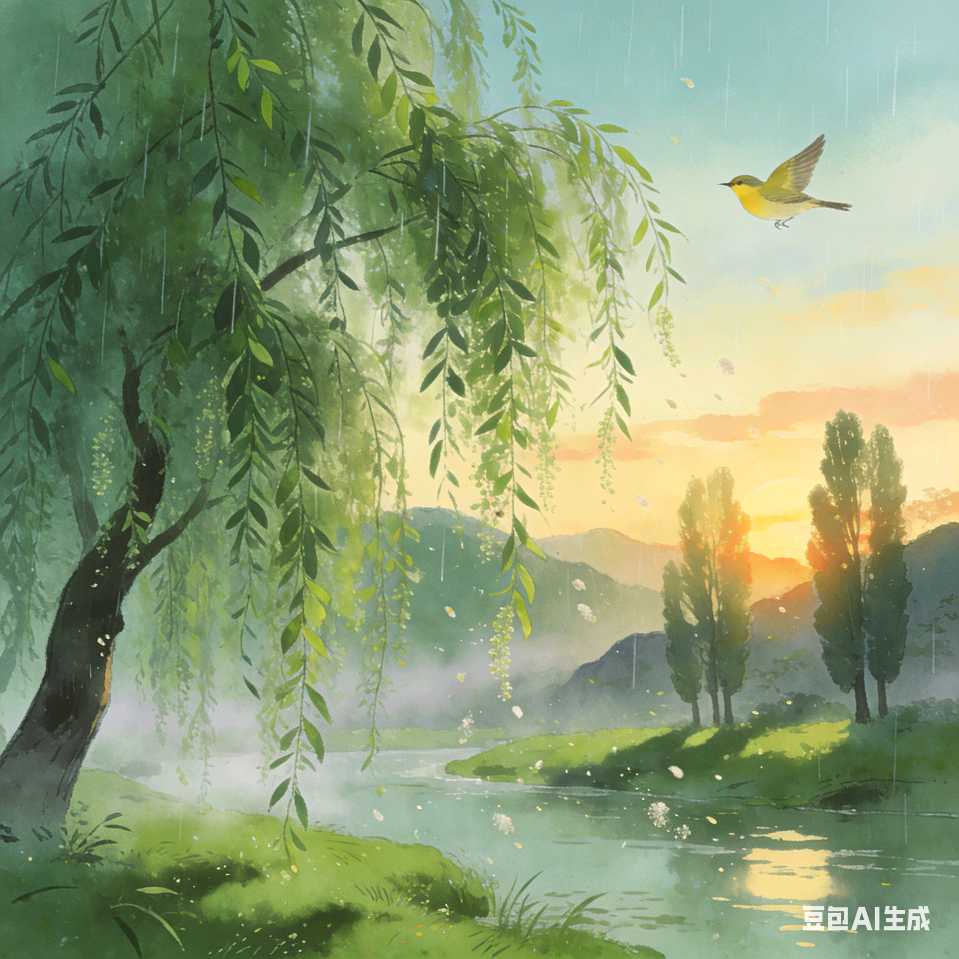 翠柳【咏柳】黄河边游玩见景偶得