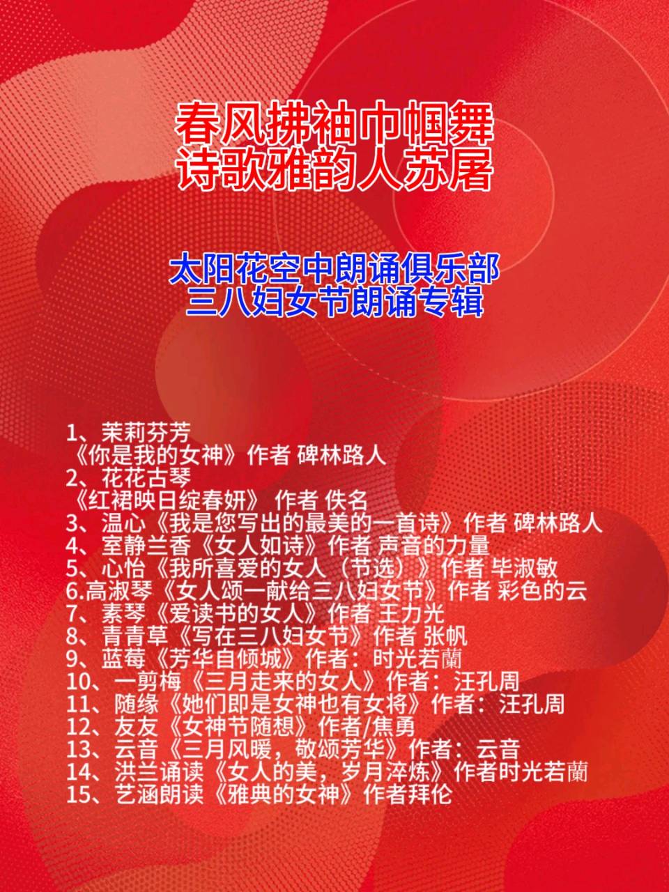 《春风拂袖巾帼舞 诗歌雅韵人苏屠》三八妇女节朗诵专辑 太阳花空中朗诵俱乐部0345期