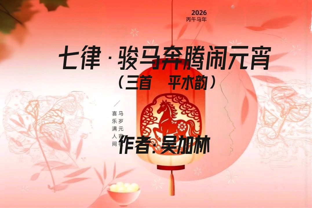 【佳音传诵·吴加林作品专栏】《七律•骏马奔腾闹元宵(三首 平水韵)》作者:吴加林(江苏 盐城)Ⅱ 主播:申耕 Ⅱ 编辑制作:彭佳(总第491期)