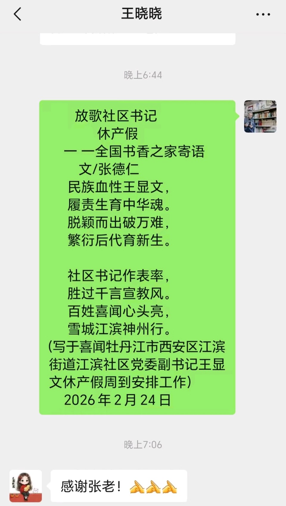 名家专栏 |张德仁:放歌社区书记休产假一 一全国书香之家寄语