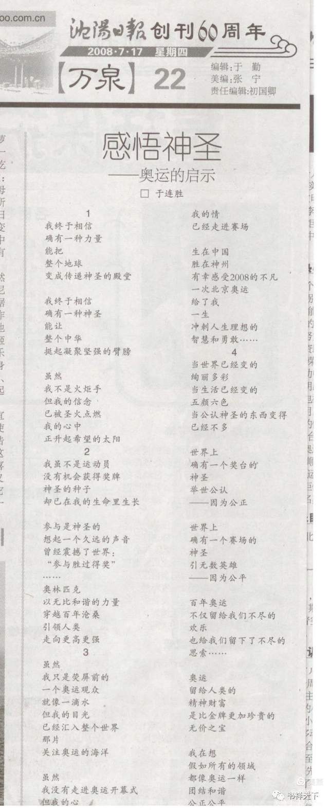 【丝路诗刊】于连胜《 感悟神圣——奥运的启示》