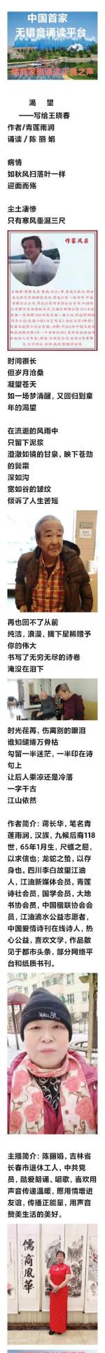 渴 望——写给王晓春 作者/青莲雨润 诵读/陈 丽 娟