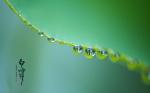 蒹葭苍苍晨风爽,碧绿草色水滋养。落叶感知秋煞意,露滴枝叶珍珠藏。
