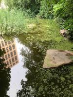 落日溶金丛林染,无风湖面平如镜。静幽深远曲径处,纳凉避暑恋伴行。