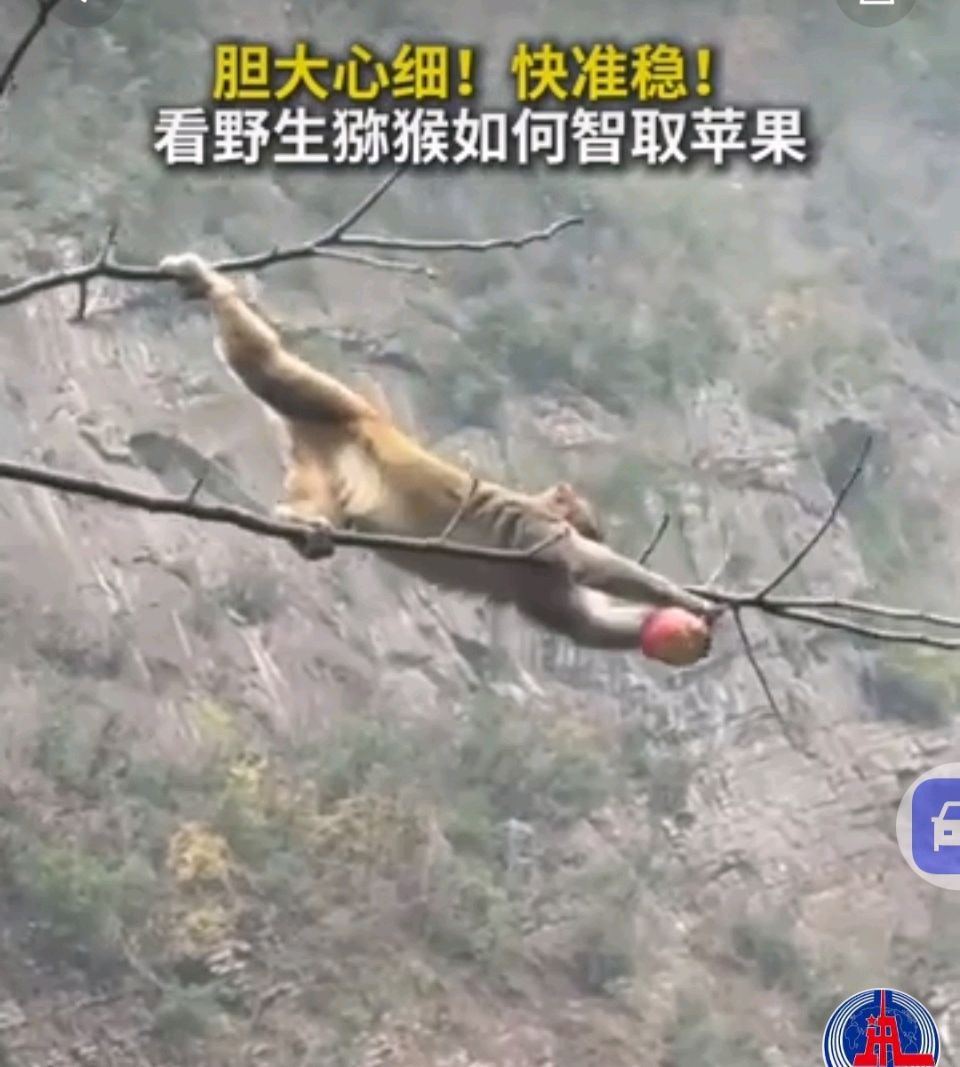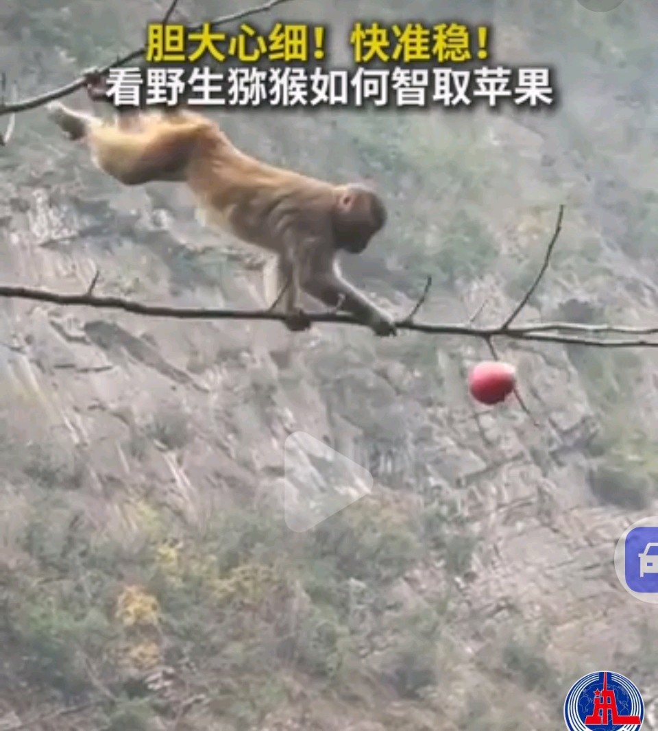 七绝·观”野生猕猴智取苹果”视频有感