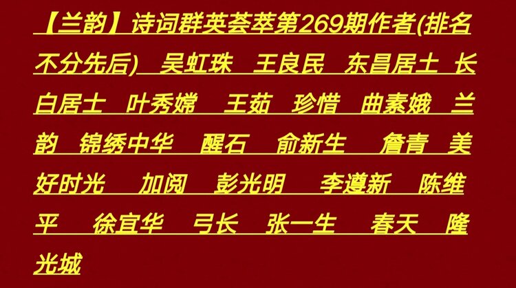 【兰韵】诗词群英荟萃第269期词,绝句,楹联