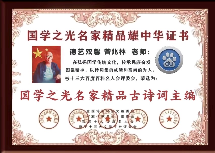 『请雅赏传唱经典』——『国学之光名家精品曾兆林古诗词主编《七律:腊八粥香》(平水韵)专刊展播』