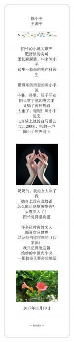 《陈小手》著名作家诗人王渊平佳作欣赏