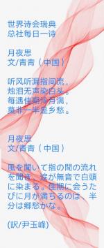 世界诗会瑞典总社每日一诗:月夜思 文/青青(中国)