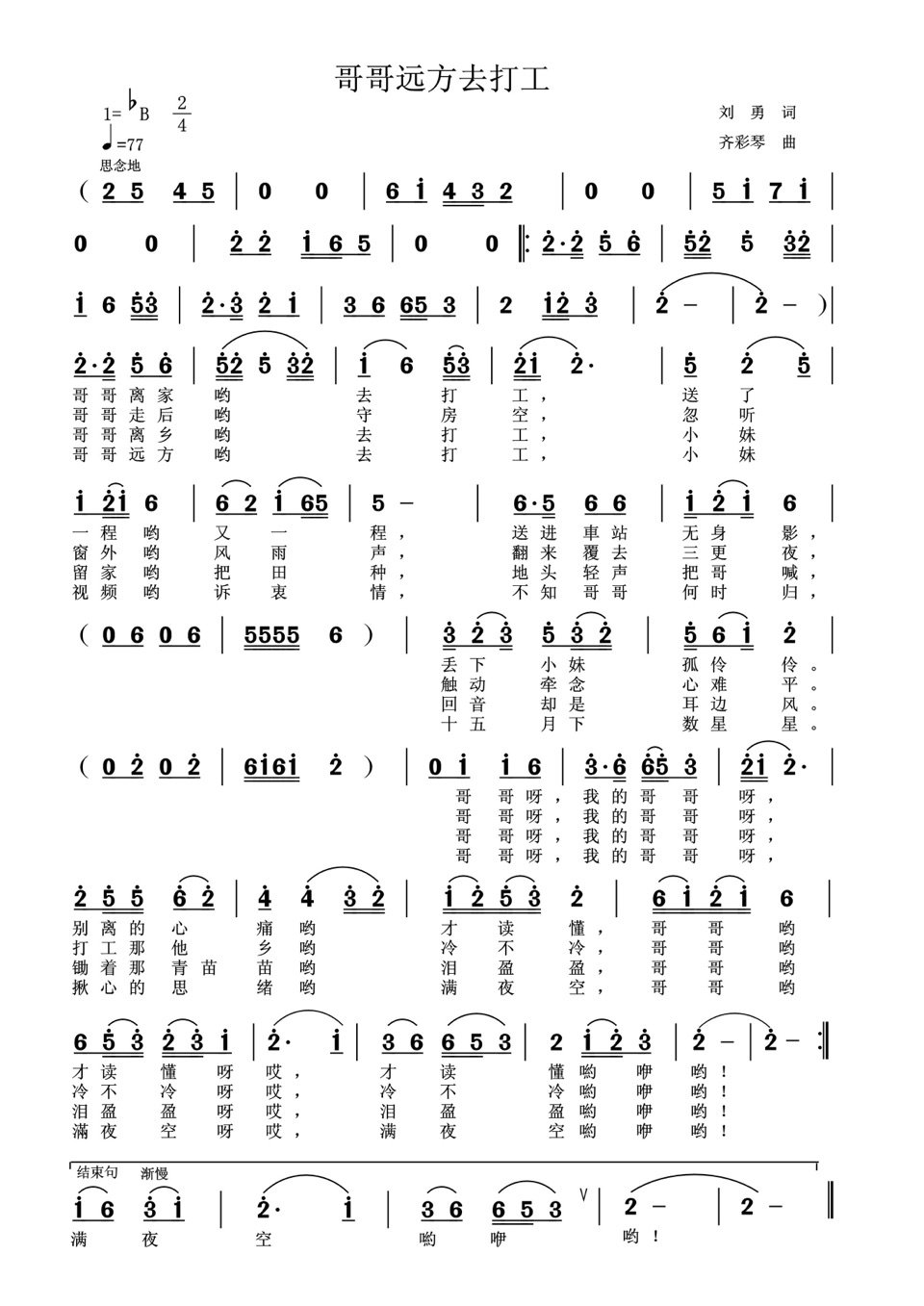 【絲路文华】大平台刊播原创歌曲《打工的哥哥快回来》作词/刘 勇 、作曲/齐彩琴,演唱/王永辉,MIDI/彩之凤