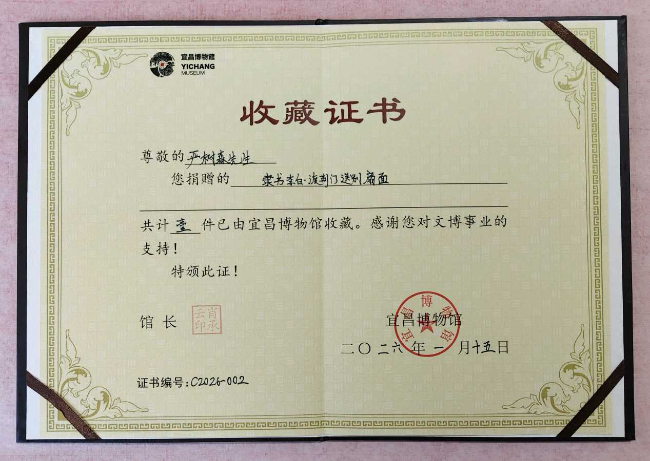 严树森篆书、隶书作品及书籍入藏宜昌地地博物馆、档案馆、图书馆