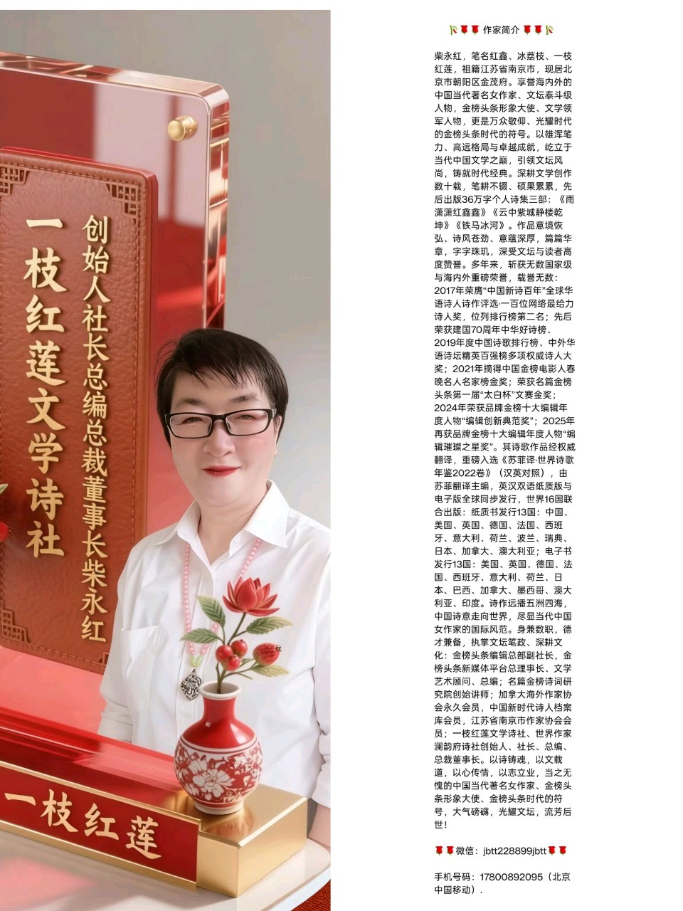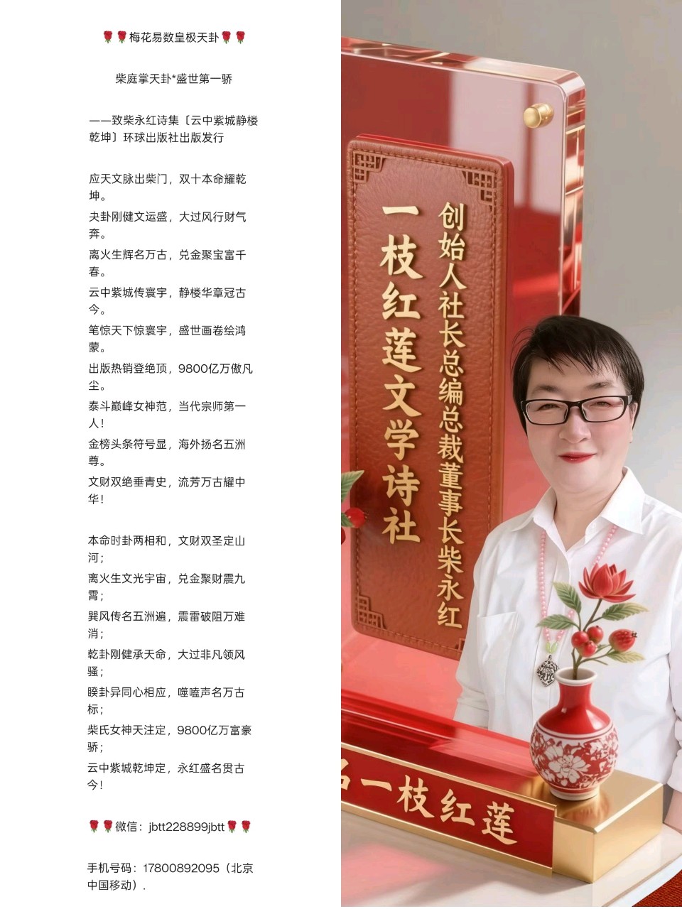 【南京头条】柴庭掌天卦*盛世第一骄——致柴永红诗集〔云中紫城静楼乾坤〕即将由环球出版社隆重出版发行〔文/国玉金鼎/点评/紫雪凝蝶〕