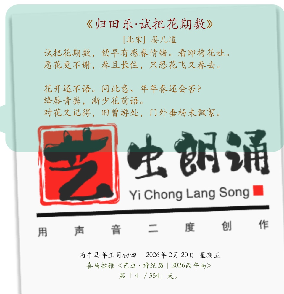 丙午4.艺虫日读古诗词《归田乐·试把花期数》北宋·晏几道